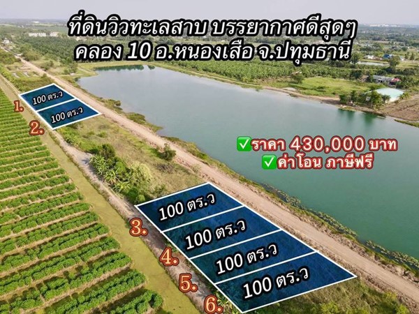 ที่สวยชิวล์วิวบึงน้ำ-100.วา-Sาคาเบาๆที่ดินคลอง 10 หนองเสือ ปทุมธานี.