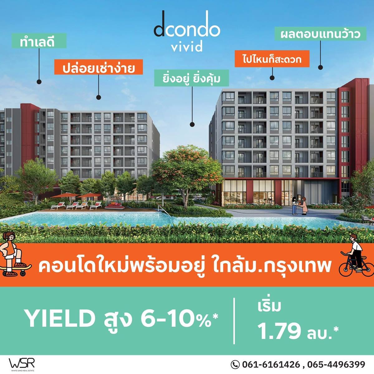 ห้ามพลาด ดีคอนโด วีวิด รังสิต ทำเลดีมาก ใกล้ ม.กรุงเทพ พร้อมรถรับ-ส่งถึงหน้ามหาลัย โทร 065-4496399 ขาย For Sale condominium